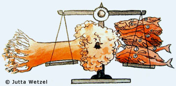 Je nach Bedarf kann ein Lebewesen nun noch andere Stoffe in und um die Eiweiße einlagern, etwa Mineralien, die einen Panzer, Zähne oder Knochen härter machen oder Holzfasern, die Bäume stabil machen. Unglaublich, was dann alles entsteht: solide Gerüste, höllisch giftige Substanzen, Farbstoffe aller Art, sagenhaft elastische Bänder, ultradünne Häute und und und…